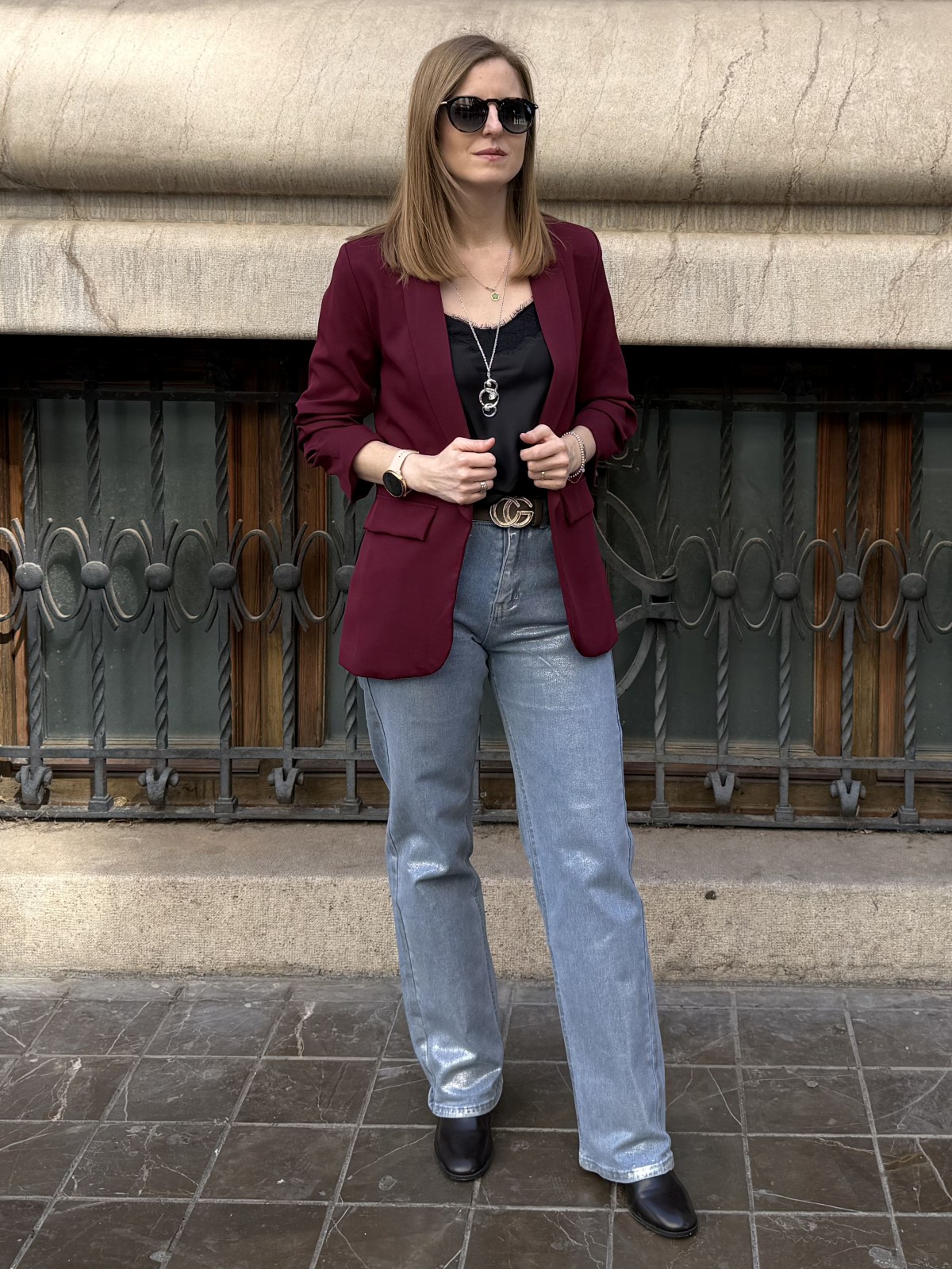 Jeans rectos efecto metalizado
